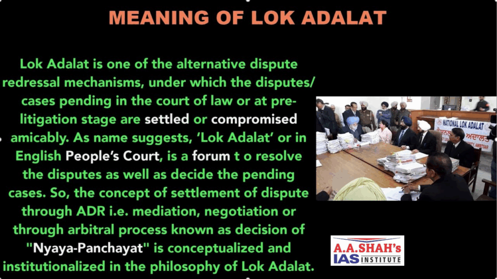• Lok Adalats are governed by Legal Services Authorities Act, 1987, inspired by Article 39A.